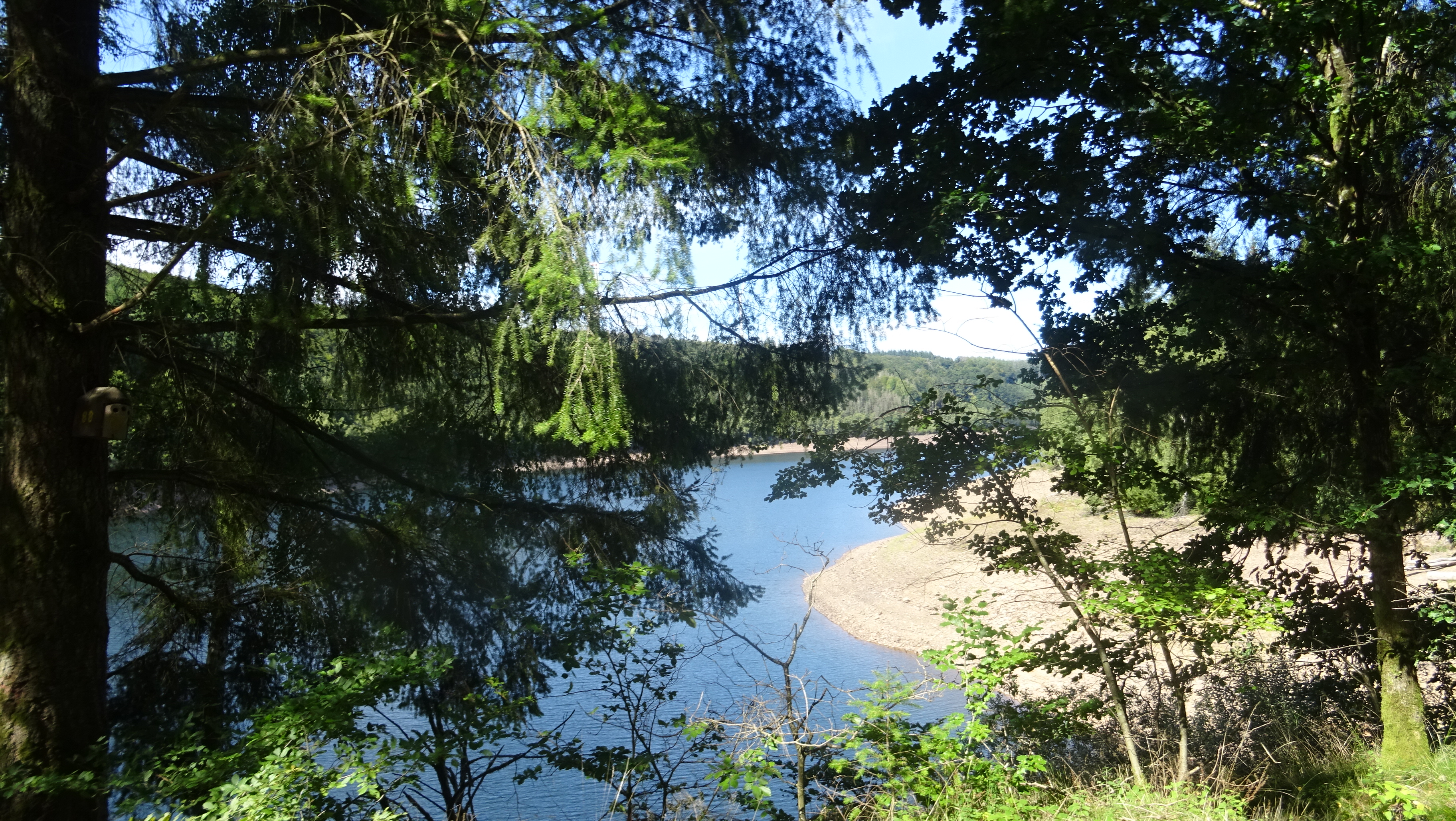 Standard Tour, Hartwig und seine Frau Silke waren auch wieder mit dabei. Richtig schön Gemütlich starteten wir durch Weiler, Leitzweiler Sombach und an der Autobahn entlang nach Primstal, alles in einem Tempo so dass man sich gut Unterhalten konnte. Durch Kastel, Nonnweiler an der Wassertretanlage vorbei und den schönen Weg an den Weihern vorbei zum Stausee. auf der Krone der Talsperre machten wir die sogenannte Bananenpause. Weiter dann Richtung Schwarzenbach, am Tor zum Keltenpark haben Silke und Hartwig die Truppe verlassen (Familientreffen). Hinter Schwarzenbach sind wir zum Peterberg, aber dann doch nach Bosen abgebogen. Obwohl die Ferienzeit rum ist war jede Menge Betrieb um den See herum. Wir haben sämtliche Biergärten auf der Strecke Ignoriert (was dem ein und anderen nicht so gefiel, aber der Guide blieb hart (Quetsche und Mirabellen Kuchen) und so sind wir trockenen Halses nach Selbach, Imsbach und durch Theley zum schwarzen Stock und wie immer durch Leitzweiler, Weiler nach Hause.