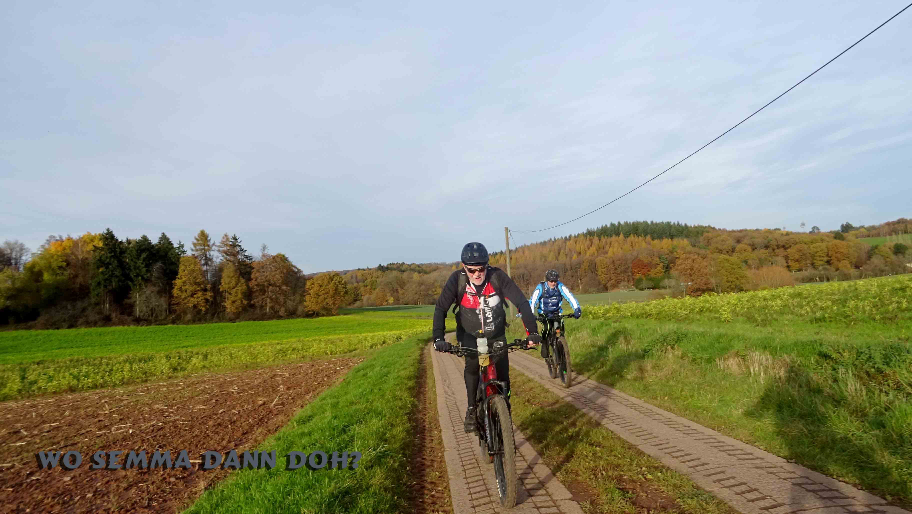 Der Führer war heute Hartwig und wenn er vorfährt kommen öfter mal neue Wege hinzu. Ein wunderschöner Herbsttag und unser Anführer ist auch gleich los an der warm Stubb vorbei nach Tholey Richtung Gronig und Güdesweiler, Walhausen und bei Mosberg/ Richweiler sind wir hoch zu den Windrädern und machten hier unsere Bananenpause. Den Rückweg nach Namborn ist er dann einen neuen Weg , für die meisten von uns gefahren nach Hirstein, bis Eisweiler. Während der Tour kam dann der Vorschlag den Abschluss auf der Ponderosa zu machen, die haben im Außenbereich einen Kühlschrank mit Getränken aller Art, wo man sich selbst bedienen kann und beim Wegfahren bezahlt man seine Getränke in einem Sparschwein. Der Guide erklärte uns noch dass der Erlös der Getränke immer gespendet wird. Hut ab, kann man schon mal des öfteren hinfahren.