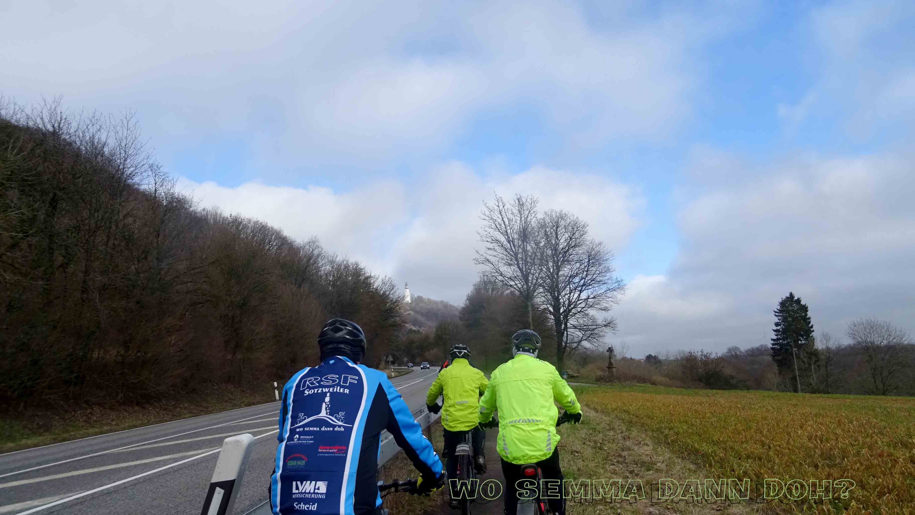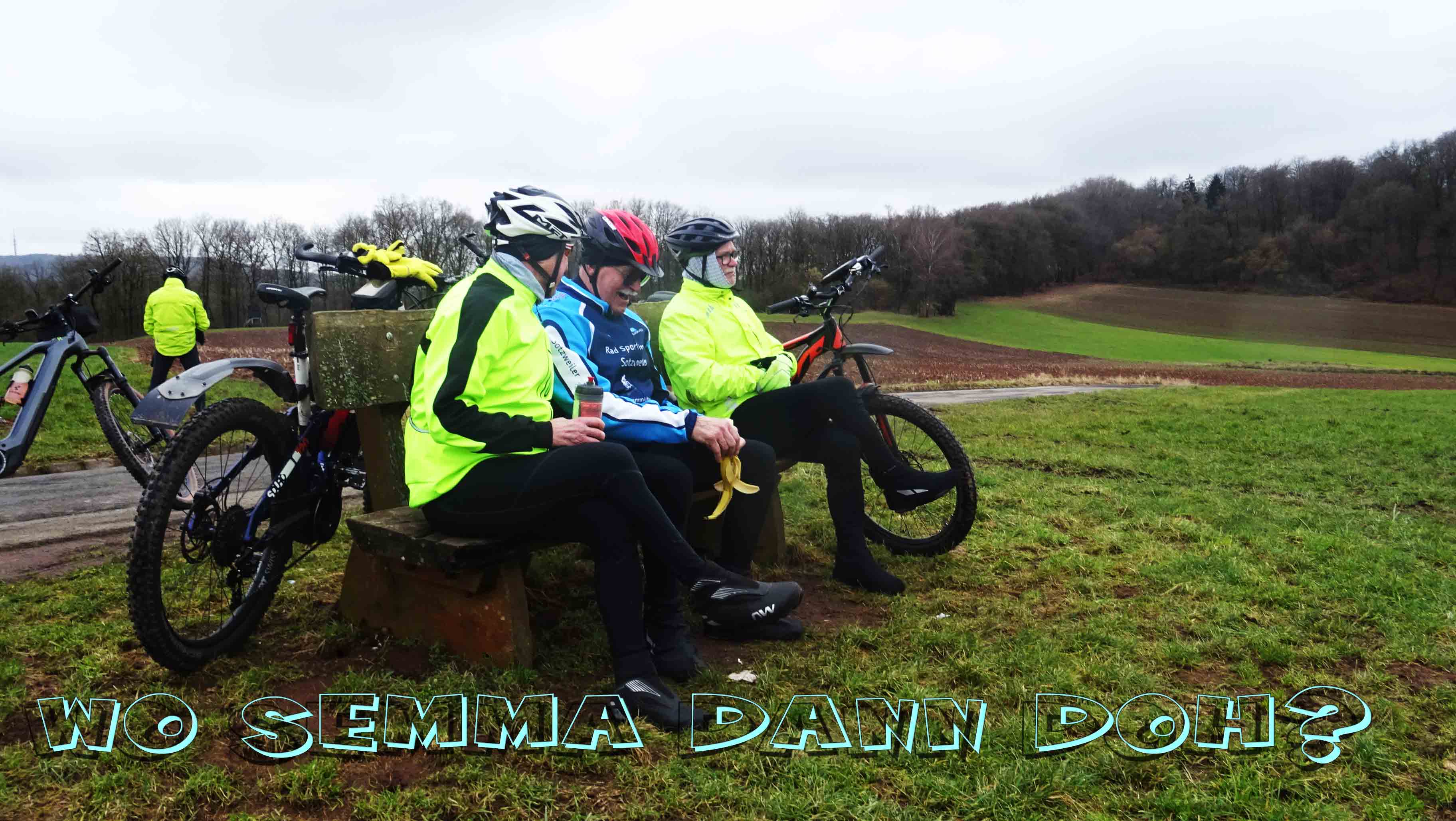 Seit längerem sind wir mal wieder an der Bundesstrasse den Scheißhiwwel hoch nach Tholey, denn die Tour sollte unbedingt sauber bleiben da einige ihr Rädchen in Top Zustand geputzt und auch sonst alles auf Vordermann hatten. Immerhin zu 6. sext sind wir auf diese Tour, hat es doch am Vortag geregnet und die Waldwege, wurde gejammert sind „Unheimlich dreckig“, so kam dann der Vorschlag vom Vize „fast“ allen (einer ist dabei der will immer in seine alte Heimat) gerade recht. Auf dem Radweg sind wir bis Oberthal, nach Güdesweiler, Namborn und Eisweiler und zum Nördlichsten Punkt Roschberg, wo wir unsere Pause machten und dann wieder zurück. Nach Baltersweiler, an Hofeld/Mauschbach vorbei auf die Radtrasse. Hinter Gronig sind wir runter vom Radweg und am Bärhof vorbei nach Theley und Leitzweiler.
